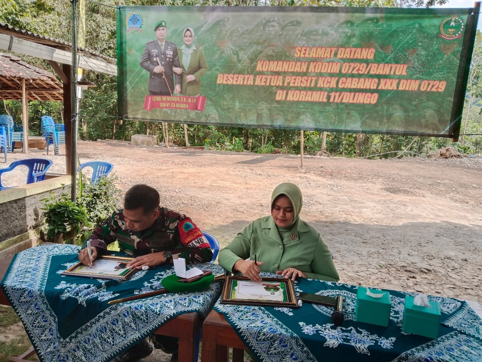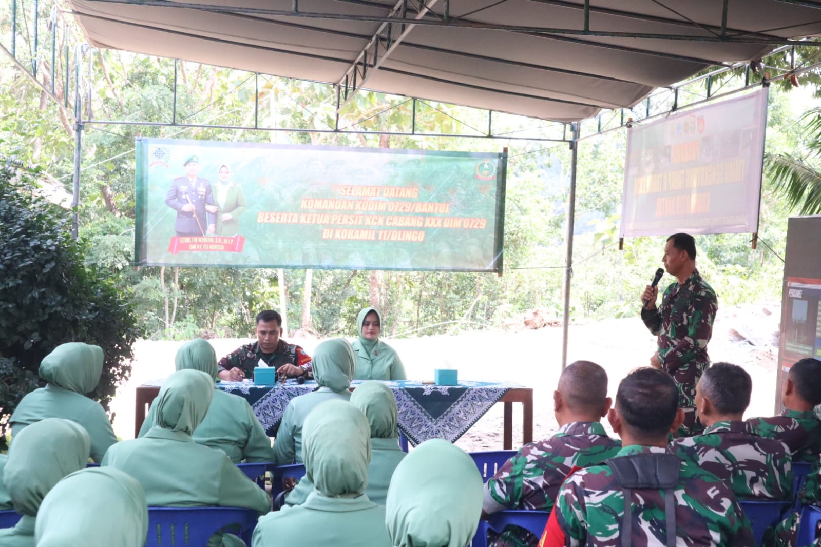 Kedatangan Komandan Kodim 0729/Bantul Letkol Inf Muhidin, S.H., M.I.P beserta rombongan mengunjungi Koramil 11/Dlingo disambut langsung oleh Danramil 11/Dlingo dan para anggota serta Persit koramil.