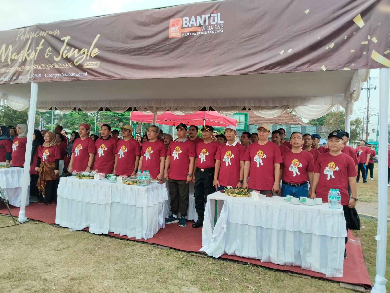 BANTUL – Dandim 0729/Bantul hadiri Acara Peluncuran Maskot & Jingle Pemilihan Bupati dan Wakil Bupati Bantul Tahun 2024 yang dihadiri lk 500 orang di Lapangan Paseban d/a. JL. Wolter Monginsidi, Kurahan, Kalurahan Bantul, Kapanewon Bantul, Kabupaten Bantul. (09/06/24).