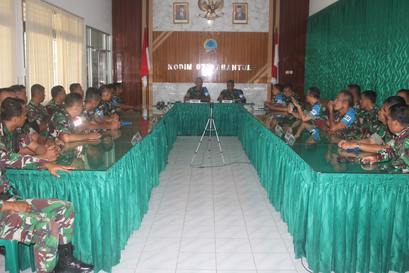 Dalam rapat yang dipimpin Komandan Latihan (Danlat) Kapten Inf Sukir di hadiri oleh seluruh Staf latihan, koordinator materi, para pelatih dan pendukung dengan jumlah 27 orang yang terlibat dalam Latbakjatri Semester I Kodim 0729/Bantul TA. 2024.