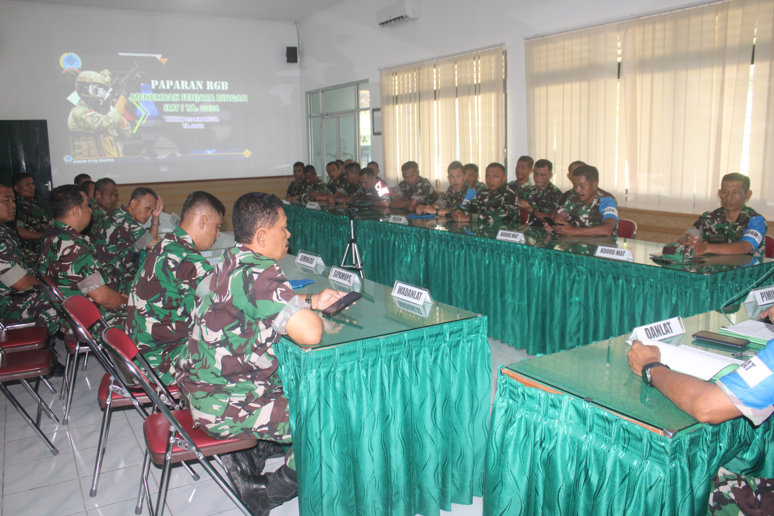 BANTUL – Dalam rangka mematangkan persiapan dan kesiapan penyelenggaraan latihan menembak senjata ringan (Latbakjatri) Semester I TA. 2024, Kodim 0729/Bantul menggelar briefing pelatih dan pendukung bertempat di Ruang Data Makodim Jl. A. Yani No. 1 Melikkan Kidul Bantul , Badegan, Bantul , Bantul, Daerah Istimewa Yogyakarta. Rabu (12/06/24).