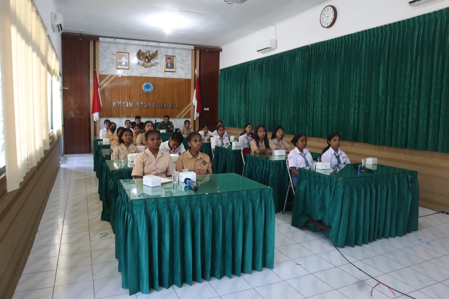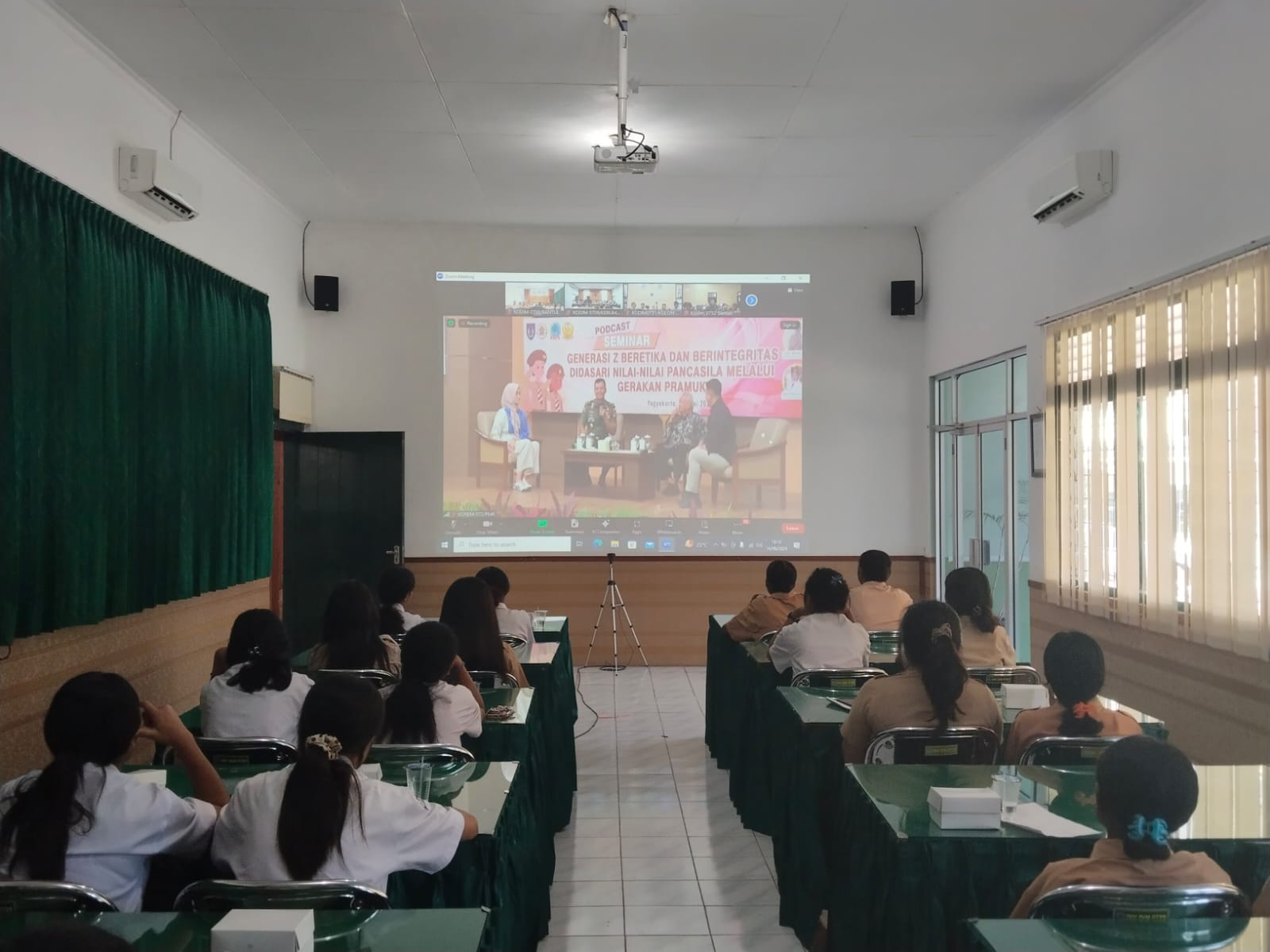 Bantul-Bertempat di Ruang Data Makodim 0729/Bantul, Dandim 0729/Bantul Letkol Inf Muhidin, S.H., M.I.P., bersama dengan puluhan pelajar dari SMK Putratama Bantul mengikuti Seminar Podcast secara online dengan tema Generasi Z Beretika dan berintegritas didasari nilai nilai Pancasila melalui gerakan Pramuka, Rabu (19/06).