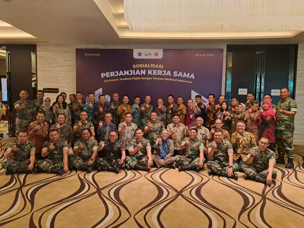 Bantul – Dandim 0729 Bantul, Letkol Inf Muhidin, S.H., M.I.P., mengikuti kegiatan Sosialisasi Perjanjian Kerjasama Antara Direktorat Jenderal Pajak dengan Pusat Polisi Militer Tentara Nasional Indonesia yang dilaksanakan di Ballroom 1 dan 2 Lantai 7 PO Hotel Semarang Jln Pemuda No 118 Semarang Jawa Tengah pada Jumat (28/06).