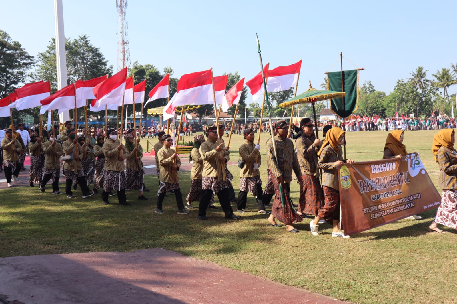 BANTUL — Segenap Jajaran Kodim 0729/Bantul menghadiri dan mengikuti Upacara peringatan HUT Kabupaten Bantul yang Ke-193 dan Kirab Budaya dengan tema “Bersatu Membangun Bantul Maju, Sejahtera, dan Berbudaya”, bertempat di Lapangan Trirenggo, d/a. JL. Ir. H. Juanda, Padukuhan Nogosari, Kalurahan Trirenggo, Kapanewon Bantul, Kabupaten Bantul. Sabtu, (20/07/24).