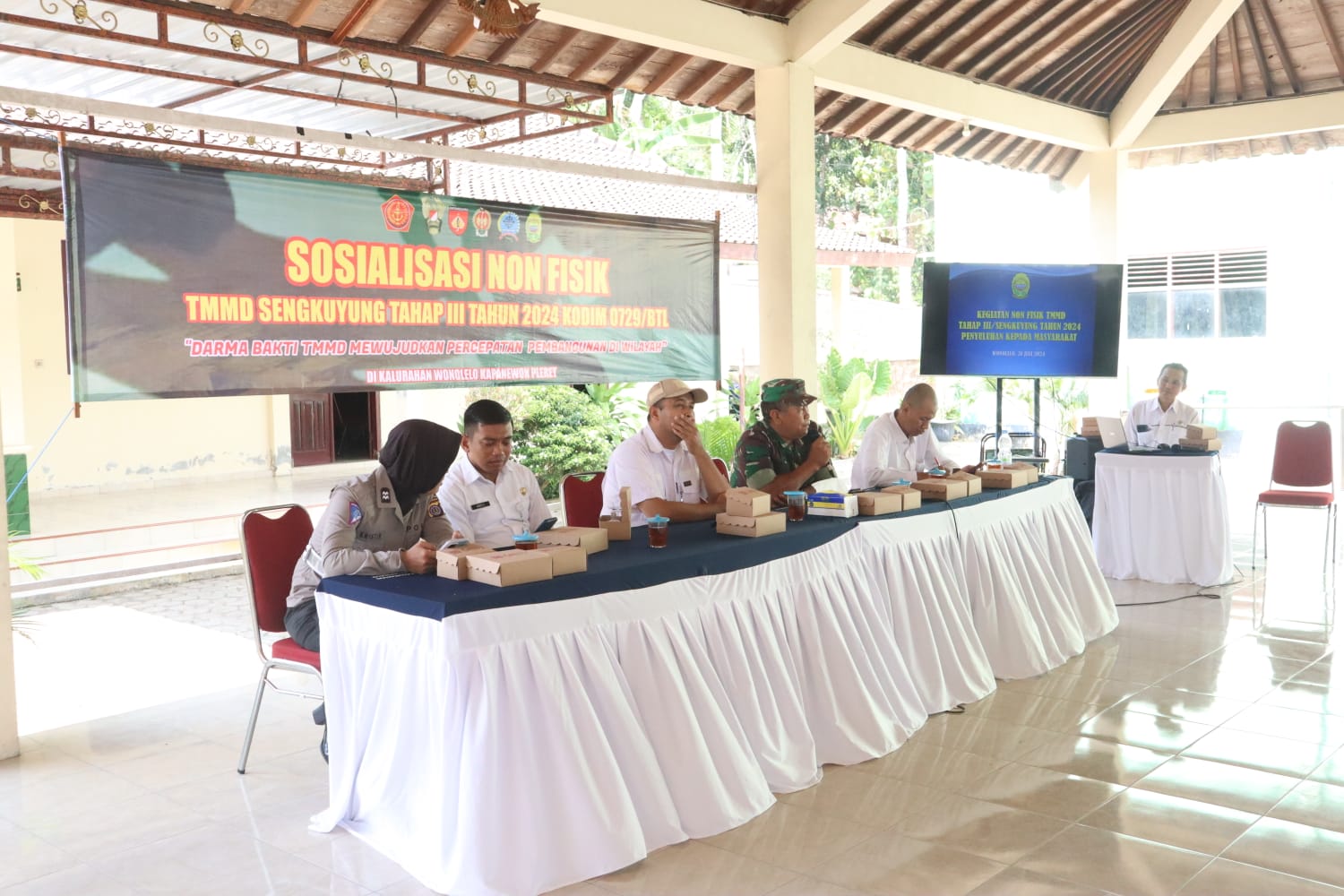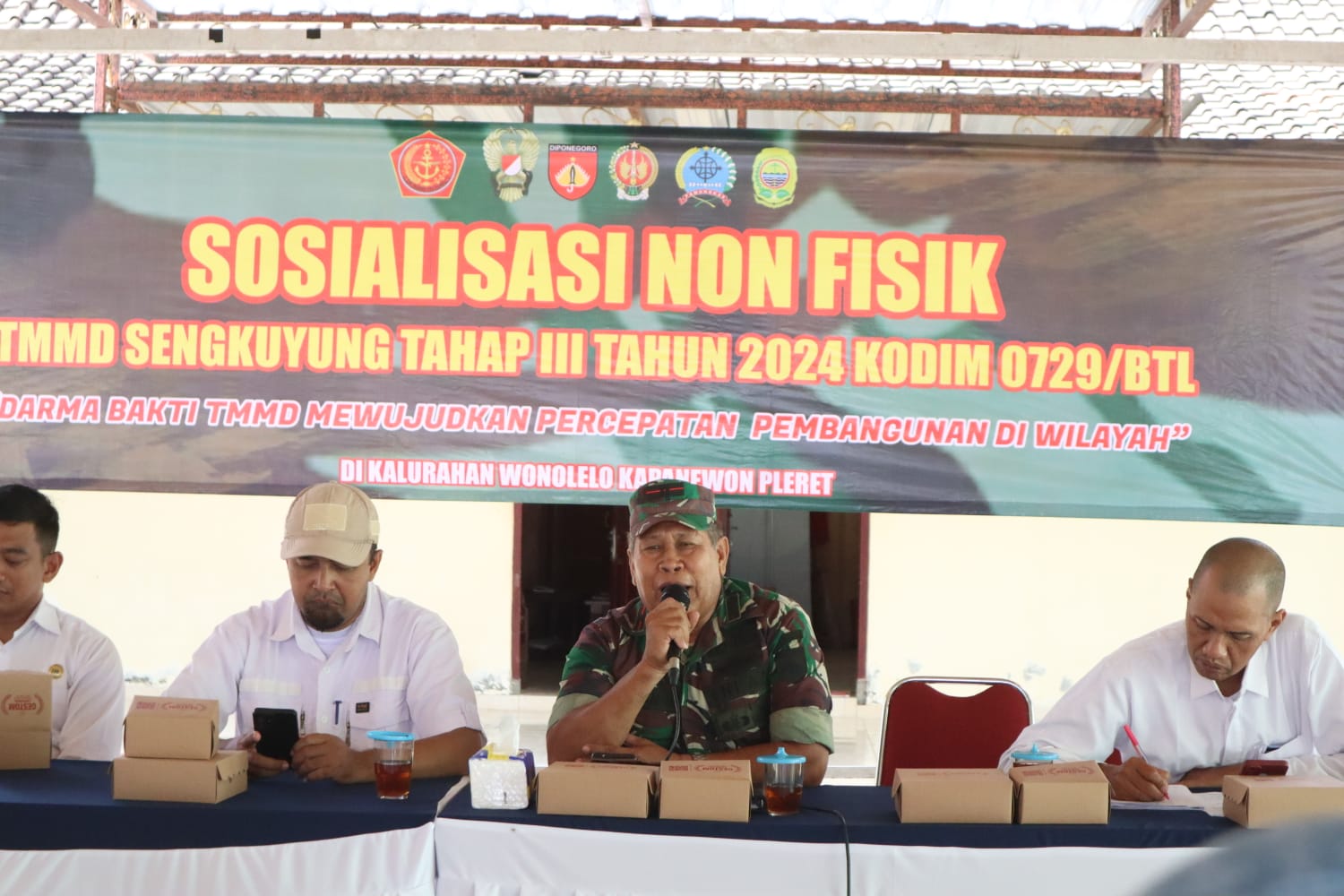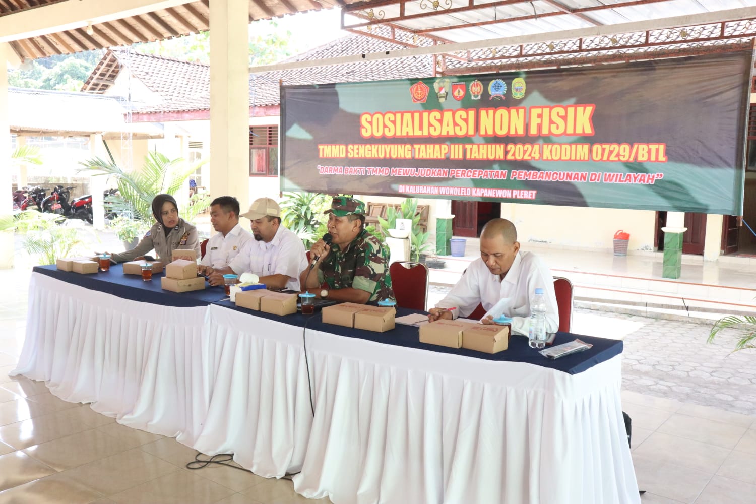Sementara Pasiter Kodim 0729/Bantul Lettu Inf Sugeng bersama Kabid Bermas Dinas PMK Suradi , S.E., MA.CC. menuturkan kegiatan non fisik ini sebagai upaya untuk mendukung kegiatan TMMD Sengkuyung Tahap III yang dilaksanakan di Dusun Purworejo, Wonolelo, Pleret, Bantul.