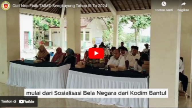 Beranda / Pembinaan Satuan / Giat Non Fisik TMMD Sengkuyung Tahap III Ta 2024Pembinaan SatuanGiat Non Fisik TMMD Sengkuyung Tahap III Ta 2024Agustus 12, 2024 Share this ArticlePrevious ArticleDandim Bantul Katim Lap Geladi Posko Bencana Alam Erupsi Gunung MerapiNext ArticleDandim 0729/Bantul Hadiri Pengajian Akbar Dalam Rangka Memperingati HUT Kemerdekaan RI Ke-79admin Related Posts Babinsa Bangunjiwo Hadiri Safari Ramadhan di Masjid Asy Syifa Februari 28, 2026 Babinsa Argorejo Cek Lokasi Tanah Longsor di Dusun Kepuhan Februari 28, 2026 Babinsa Koramil 04/Sewon Hadiri Buka Bersama Anak Yatim dan Dhuaf ... Februari 28, 2026
