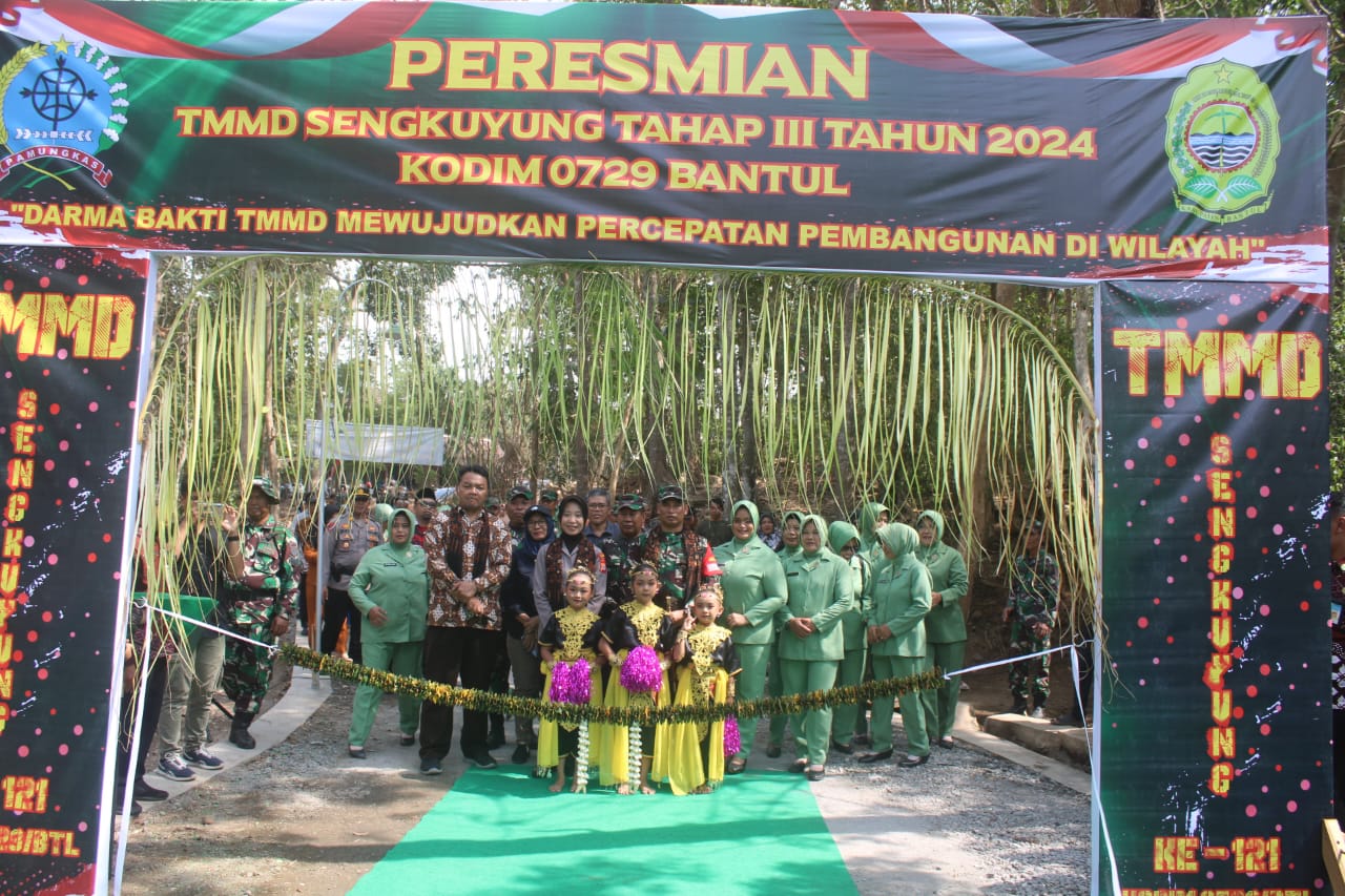 Bantul – Program TNI Manunggal Membangun Desa (TMMD) Sengkuyung Tahap III Tahun Anggaran 2024 Kodim 0729/Bantul resmi ditutup. Penutupan dilaksanakan dengan gelaran upacara di lapangan Wonolelo, Pleret, Bantul, Yogyakarta, Kamis (22/08/2024).