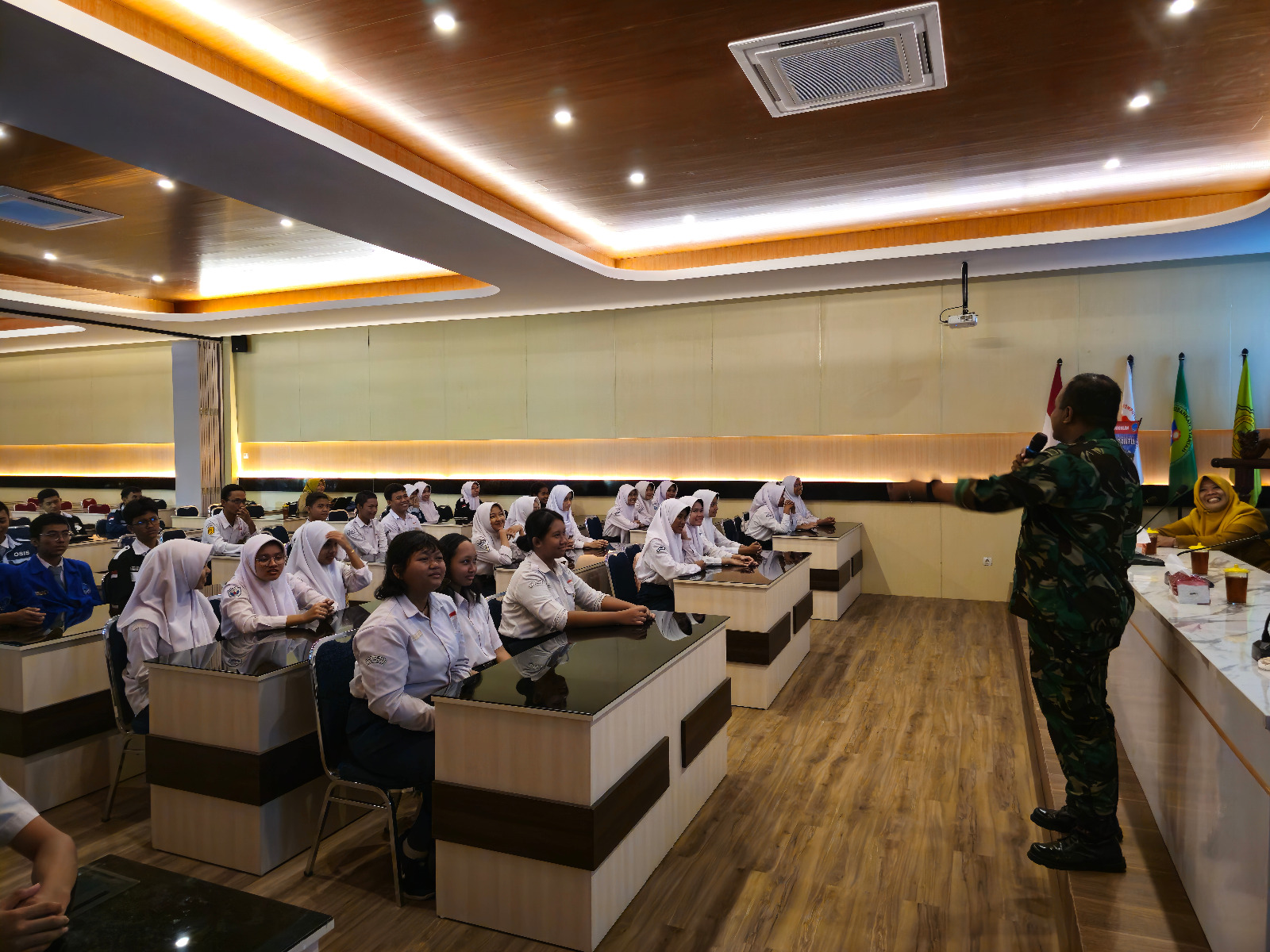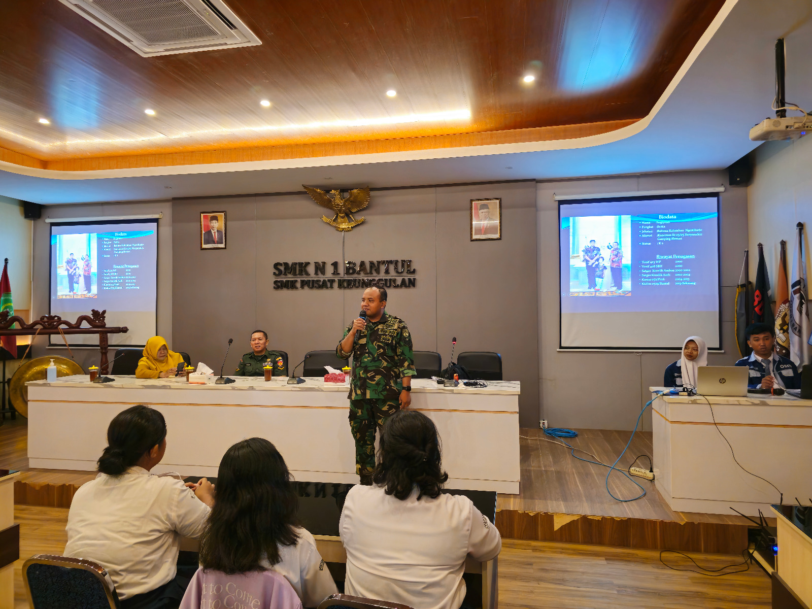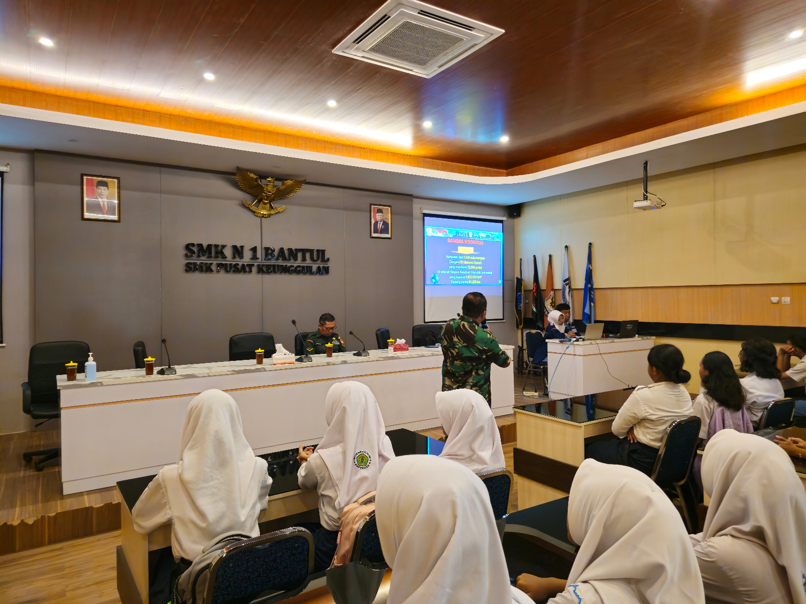 BANTUL – Personil Kodim 0729/Bantul, Serka Sugiyono dan Serda Purwanto memberikan materi tentang wawasan kebangsaan kepada siswa dan siswi SMK N 1 Bantul bertempat di Ruang Wijaya Kusuma SMK N 1 Bantul d/a Jl. Parangtritis No.KM.11, Dukuh, Sabdodadi, Kec. Bantul, Kabupaten Bantul, Daerah Istimewa Yogyakarta , Senin (09/09/2024).