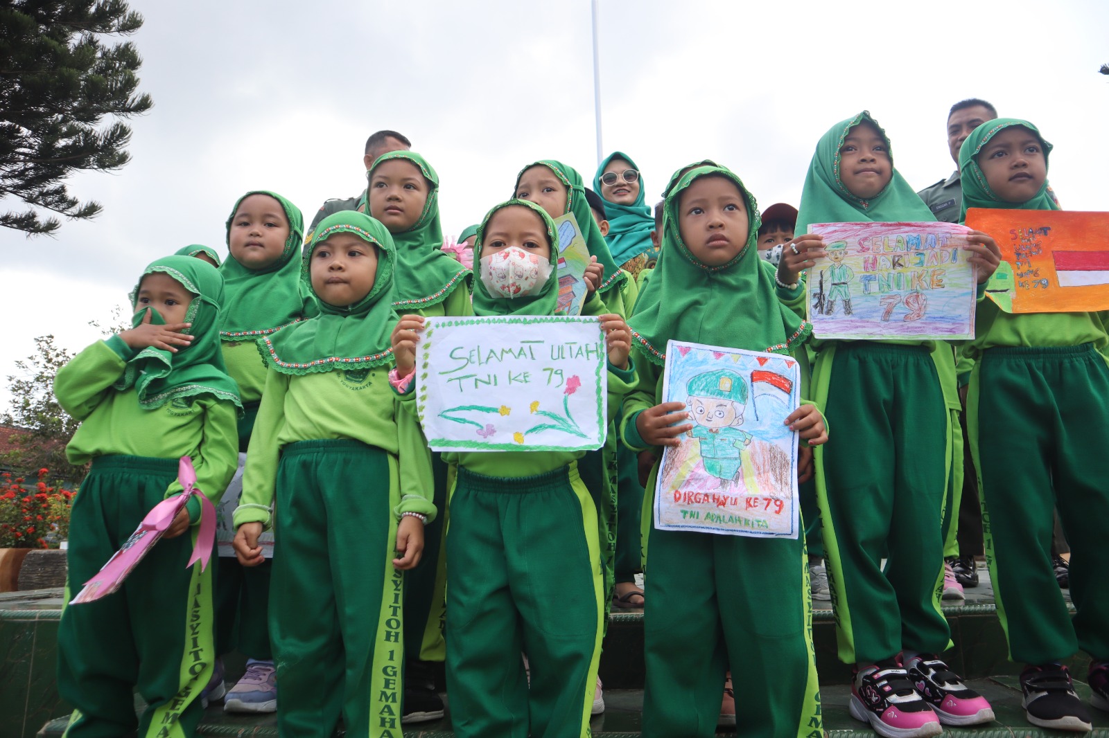Anak anak juga menyiapkan hadiah untuk bapak bapak TNI berupa karya gambar dengan tema HUT TNI Ke 79 yang beberapa waktu lalu di tanggal 5 Oktober dirayakan. Pungkasnya.