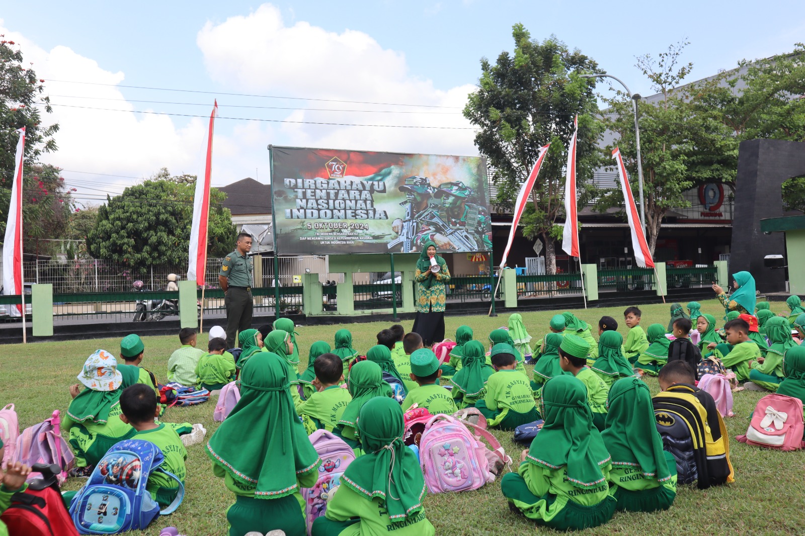 Bantul-Ratusan anak TK dari Sekolah Masyithoh I Gemahan mendatangi Makodim 0729/Bantul. Kedatangan anak anak TK tersebut dalam rangka Outing Class yang diprogramkan oleh Sekolah untuk lebih mengenal profesi tentara. Rabu (9/10/24).