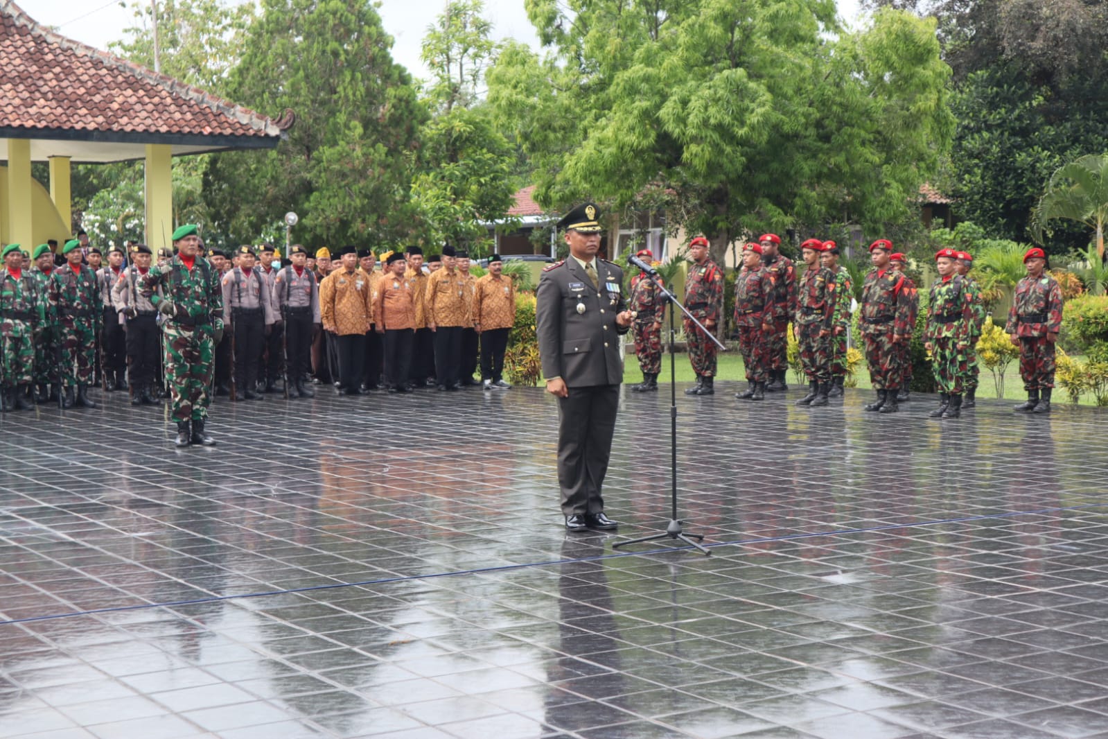 BANTUL – Kodim 0729/Bantul menggelar upacara peringatan Hari Pahlawan yang ke-79 di Lapangan Paseban, Bantul. Komandan Kodim 0729/Bantul Letkol Inf Muhidin, S.H., M.I.P. turut serta dalam upacara tersebut bersama dengan jajaran pejabat dan tokoh Kabupaten Bantul. Setelah upacara, rangkaian kegiatan dilanjutkan dengan ziarah nasional di Taman Makam Pahlawan Kusuma Bangsa yang terletak di Jalan Parangtritis KM.12, Ngaglik, Kalurahan Patalan, Kapanewon Jetis, Bantul. Minggu. (10/11/2024).