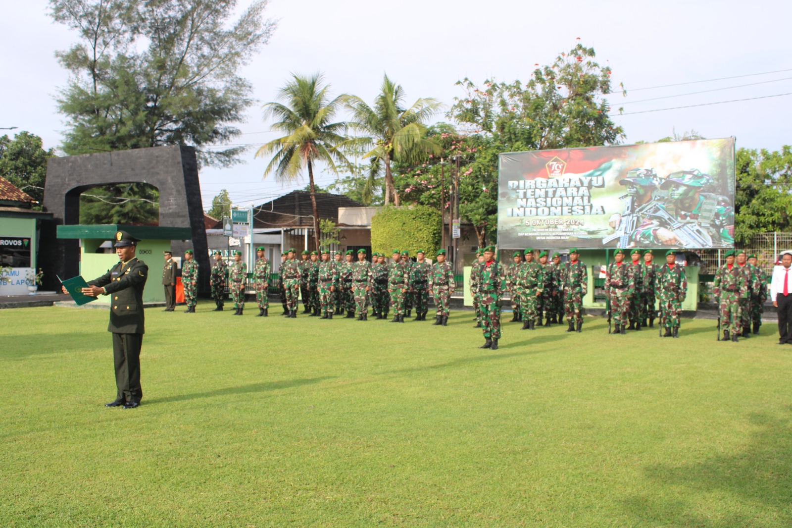Bantul – Dalam rangka memperingati Hari Pahlawan 2024, Kodim 0729/Bantul menggelar upacara yang berlangsung khidmat di halaman Makodim Bantul. Upacara ini mengusung tema “Teladani Pahlawanmu, Cintai Negerimu” dan dihadiri oleh seluruh prajurit militer serta PNS Kodim Bantul. Minggu (10/11/24).