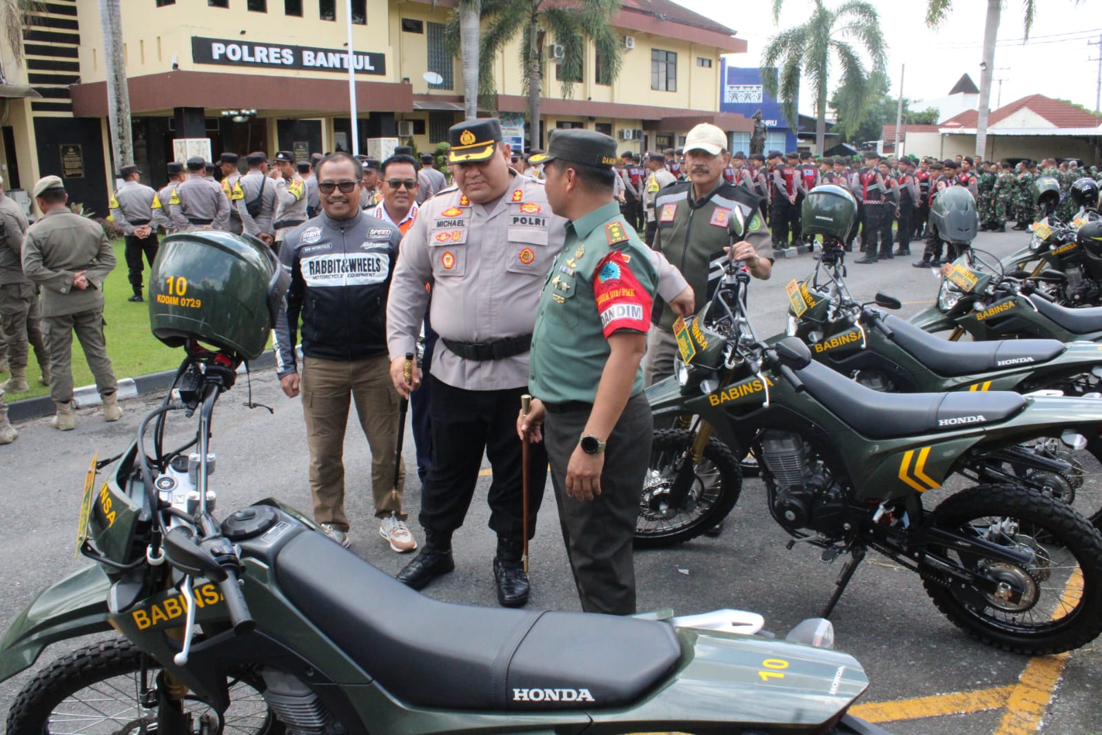 BANTUL – Komandan Kodim 0729/Bantul Letkol Inf Muhidin, S.H., M.I.P., bersama Sekda Bantul Agus Budi Raharja, S.K.M., M.Kes., Kapolres Bantul AKBP Michael R Risakotta, Kasatpol PP R. Jati Bayu Broto, SH. M.Hum, dan Kadishub Bantul Singgih Riyadi, SE, MM melaksanakan patroli gabungan pasca pelaksanaan Pilkada Bantul. Patroli yang melibatkan anggota TNI, Polri, Satpol PP, dan Dishub ini dimulai dari Polres Bantul, menyisir wilayah-wilayah strategis untuk memastikan situasi tetap aman dan kondusif. Senin, (02/11/2024).