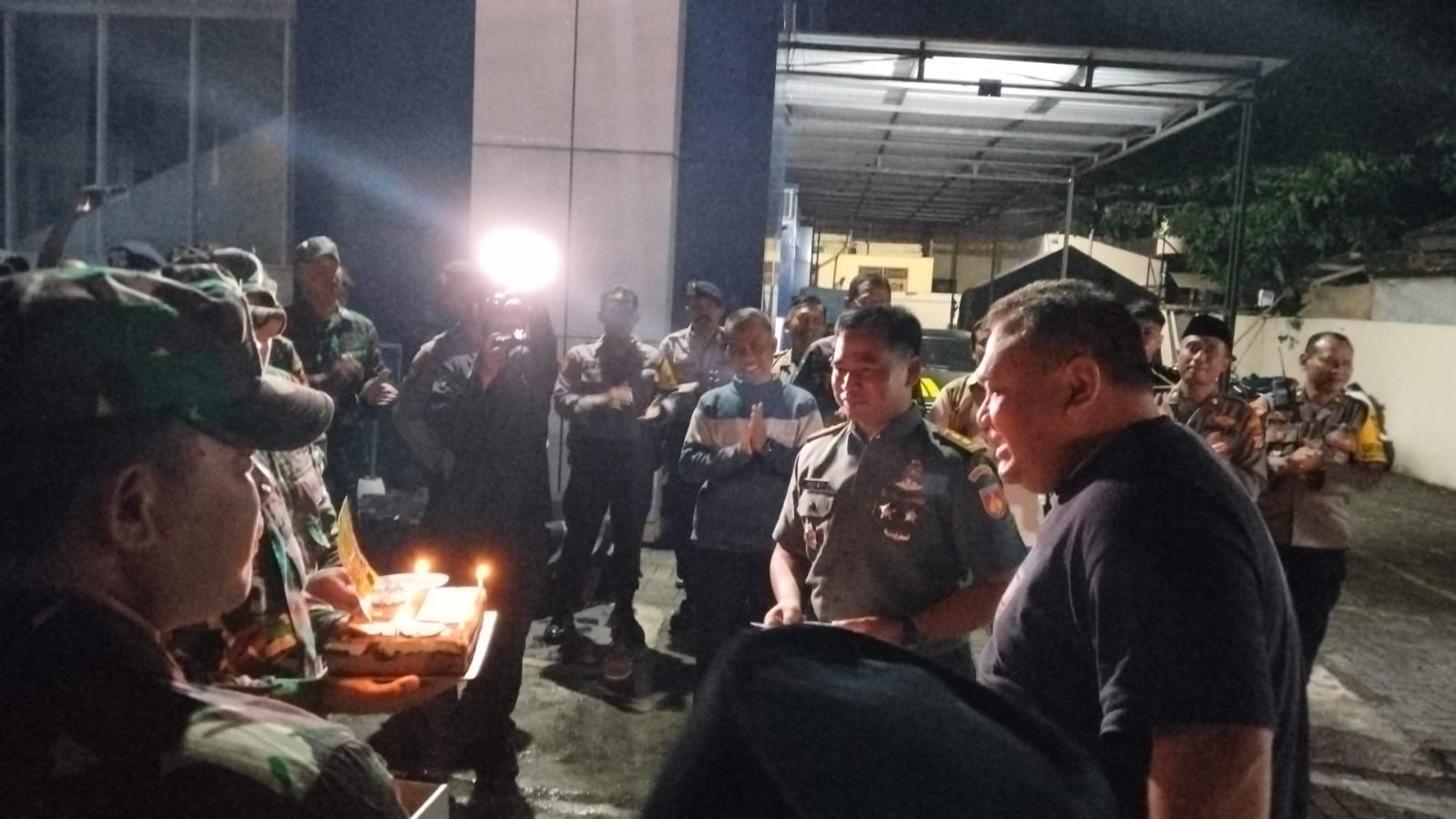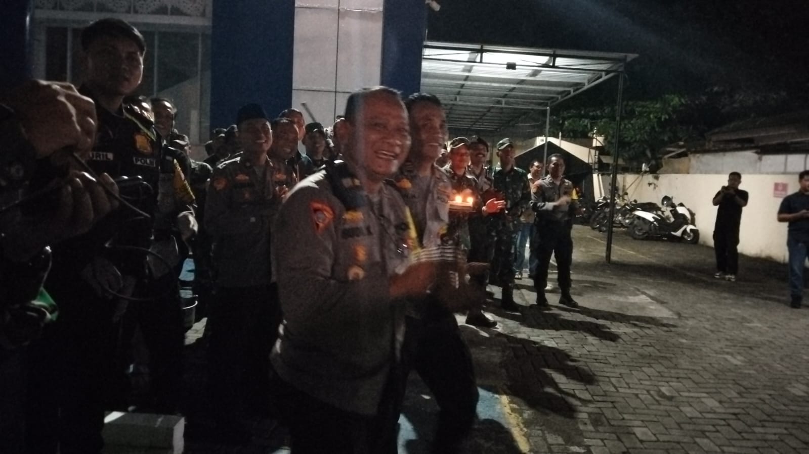 BANTUL – Dalam momen yang penuh kehangatan, Komandan Kodim (Dandim) 0729/Bantul, Letkol Inf Muhidin, S.H., M.I.P., memberikan kejutan ulang tahun kepada Kapolres Bantul, AKBP Michael R. Risakotta, S.H., S.I.K., tepat pada pukul 00.12 WIB. Perayaan sederhana namun berkesan ini berlangsung di Polres Bantul, dengan dihadiri para perwira, bintara, dan tamtama TNI dan Polri yang ikut memeriahkan suasana.