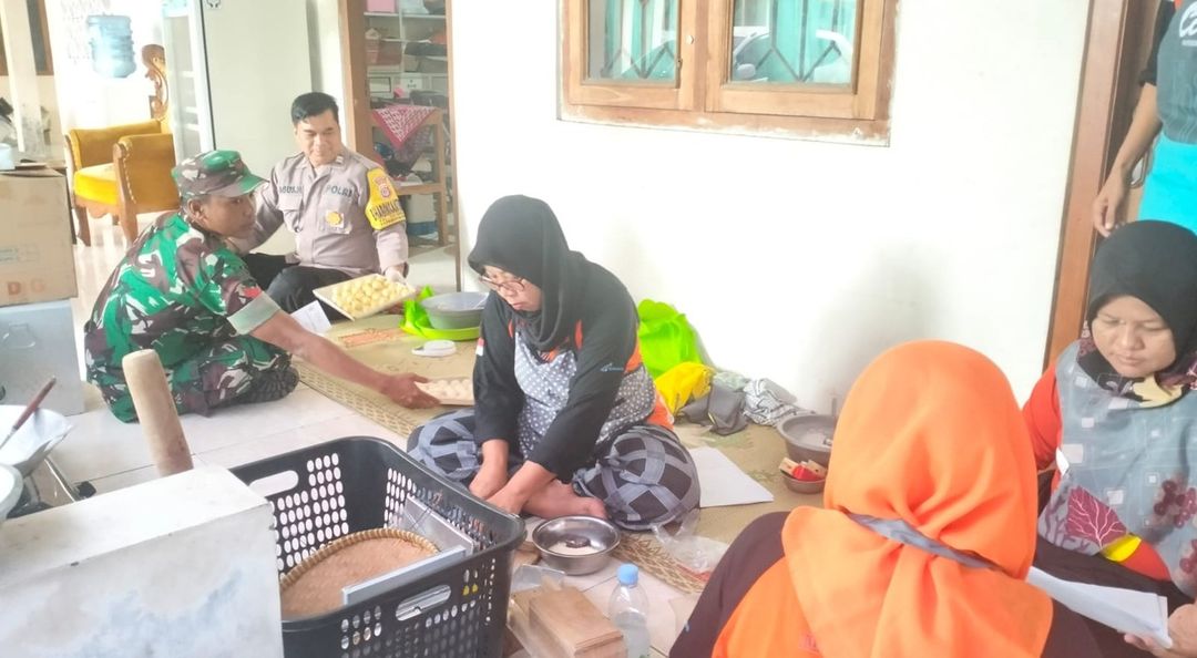 Pandak_Untuk meningkatkan ekonomi warganya, Babinsa Koramil 16/Pandak, Kodim 0729/Bantul, Koptu Ari Usman F bersama Bhabinkamtibmas desa Caturharjo Aiptu Agus Nugroho memberikan pelatihan pembuatan kue kepada ibu ibu PKK Kalurahan Caturharjo, bertempat di balaidesa Caturharjo, Rabu 12 Juli 2023.