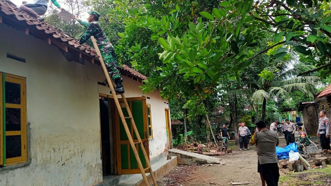 Berkat sinergitas TNI dari Koramil/15 Sanden bersama Polsek, relawan dan warga masyarakat Dodogan, Rumah Ibu Sri Surati akhirnya selesai diperbaiki, Kamis (6/7/2023).