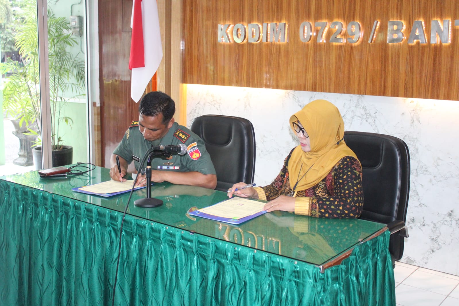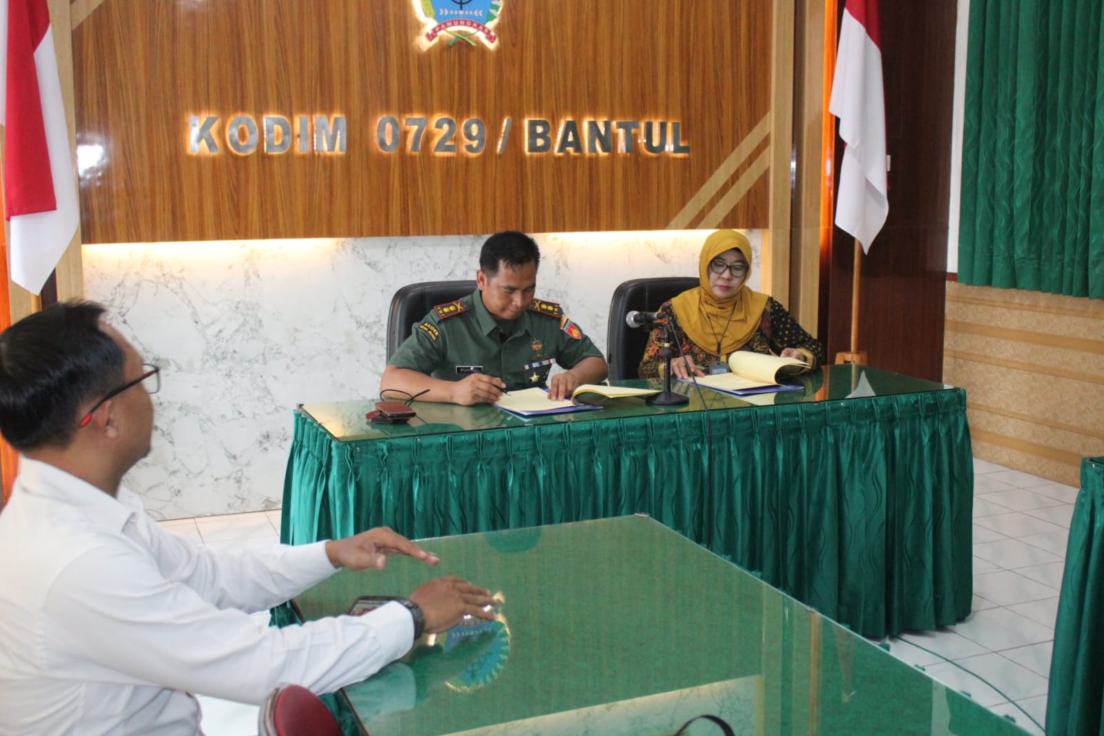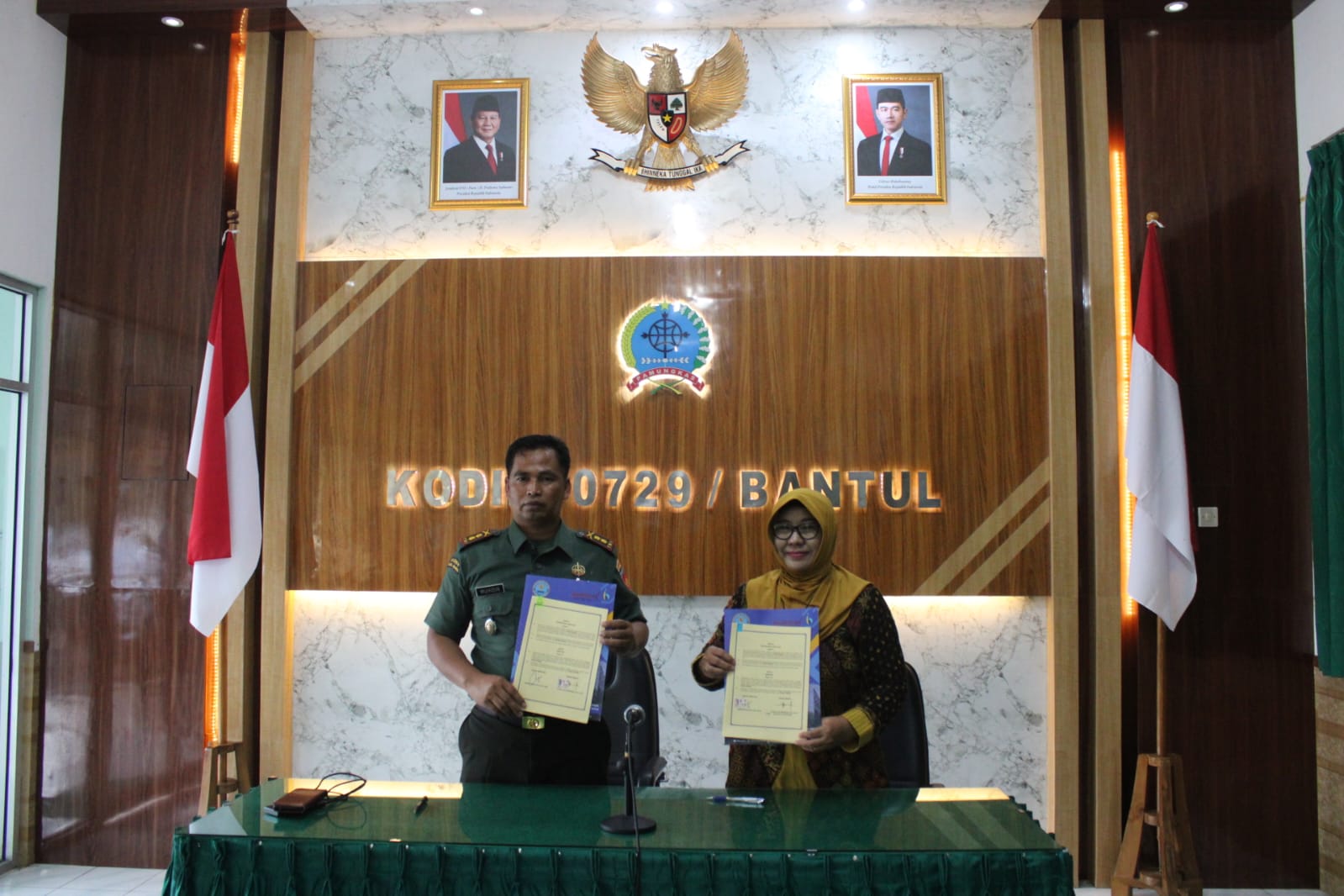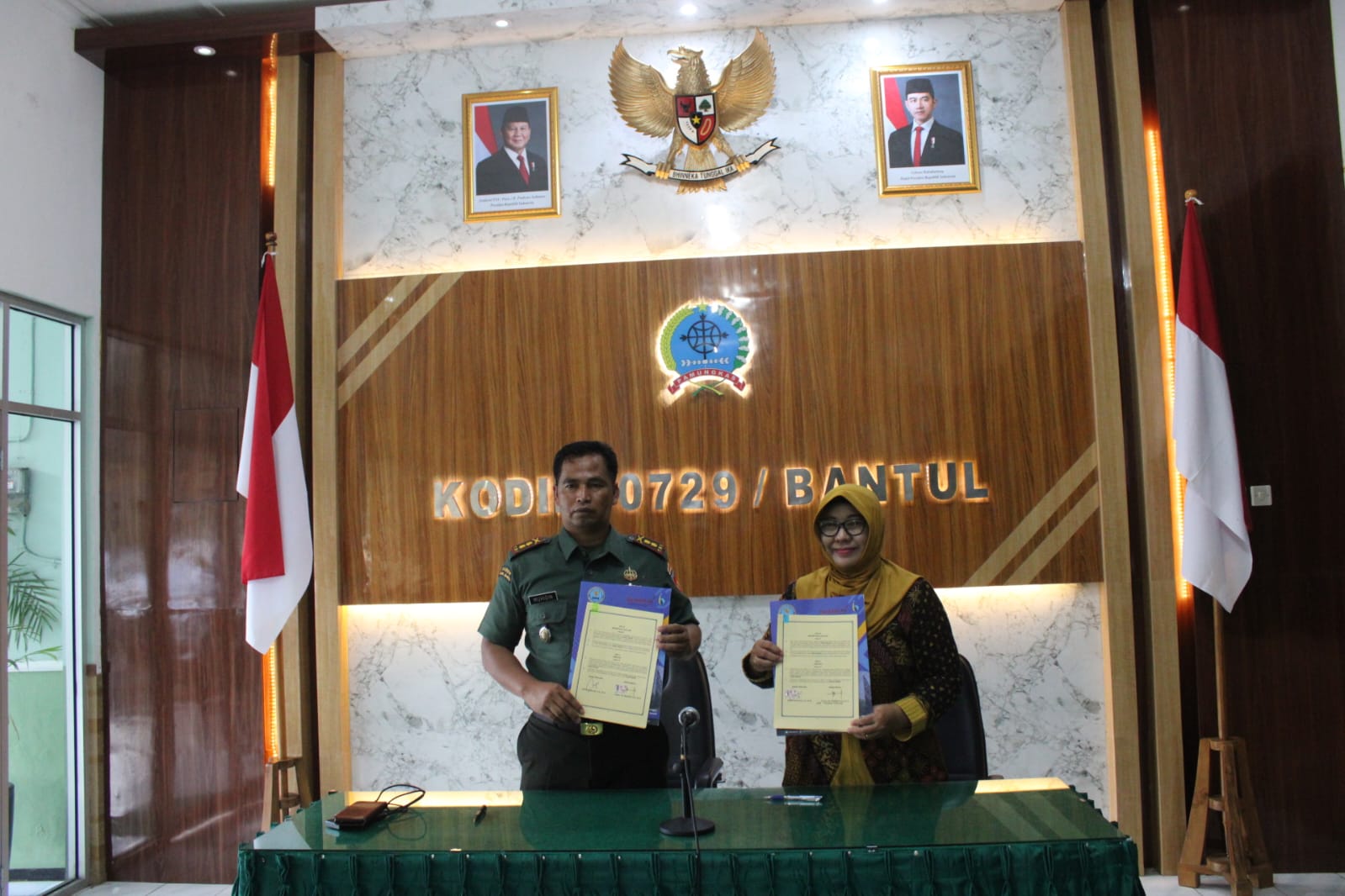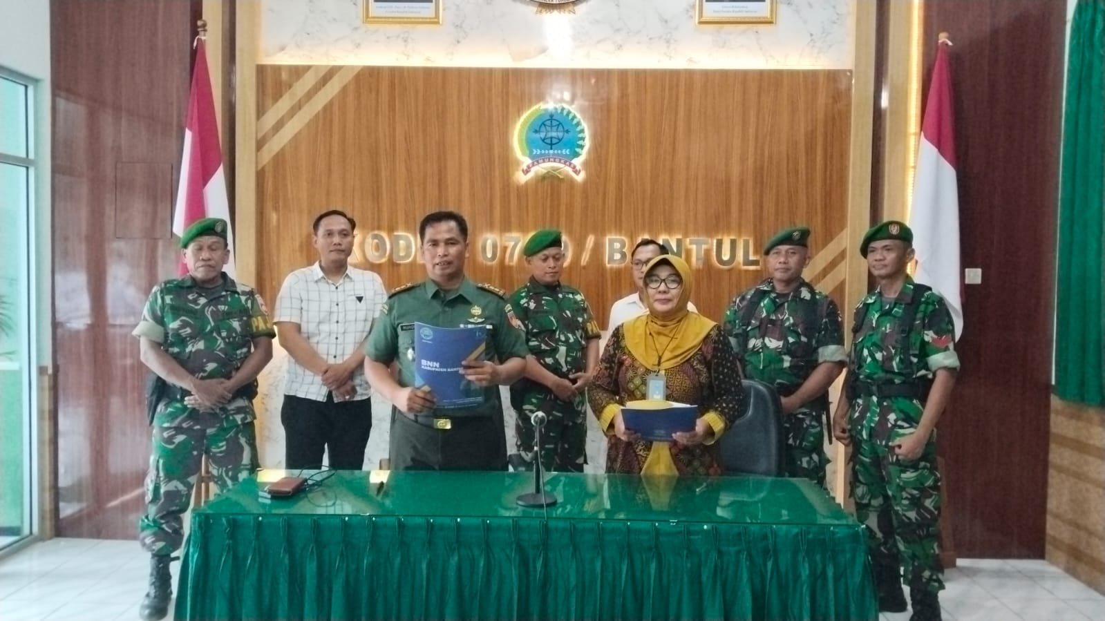 Bantul – Ibu Harfin Munajah, S.E. ,M.M. bersama anggota BNN kabupaten Bantul tanda tangani integritas kerjasama dengan Dandim bantul Letkol inf Muhidin, S.H. ,M.I.P. melalui BNN (Badan Narkotika Nasional) Kabupaten Bantul, bekerja sama dengan Kodim 0729 Bantul dalam penandatanganan fakta integritas sebagai bentuk komitmen serius terhadap upaya pemberantasan penyalahgunaan narkoba di kalangan anggota Kodim.