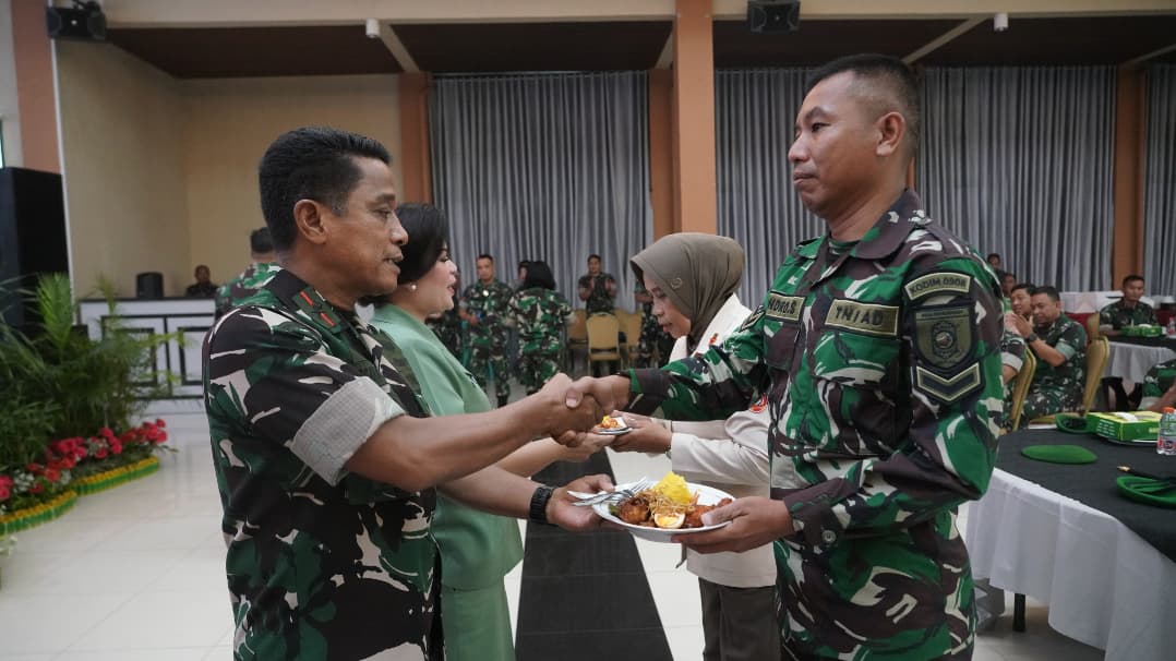 Puncak acara syukuran ditandai dengan pemotongan tumpeng oleh Danrem 091/ASN didamping ibu Ketua Kartika Chandra Kirana Koorcab Rem 091 PD VI Mulawarman yang diberikan kepada kepada prajurit berprestasi Serda Hendro Susanto dari Kodim 0908/Bontang juara I kejuaraan nasional Pickleball di Mataram NTB dan PNS Suparmi dari Satuan Denma Korem 091/ASN memsuki masa pensiun.