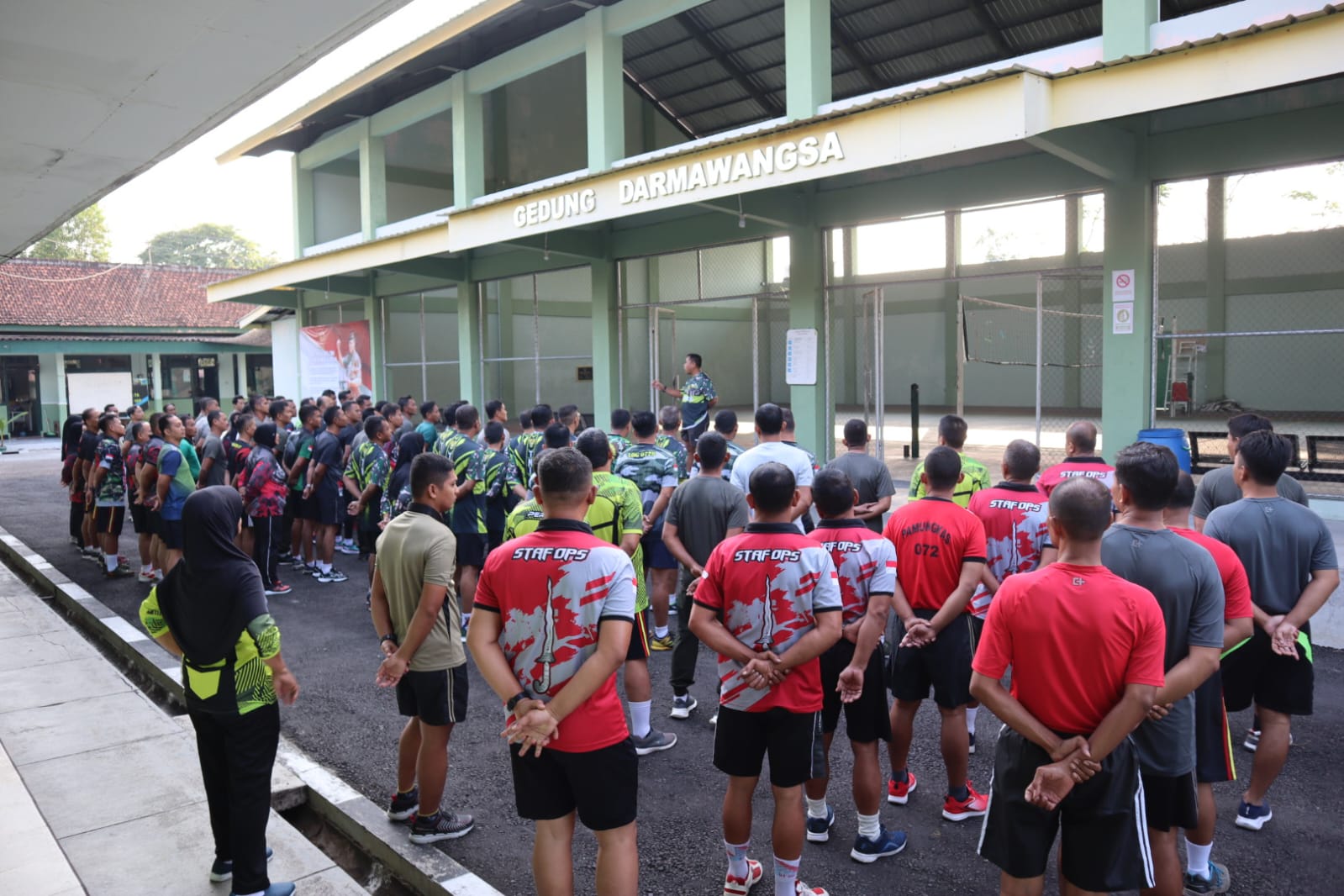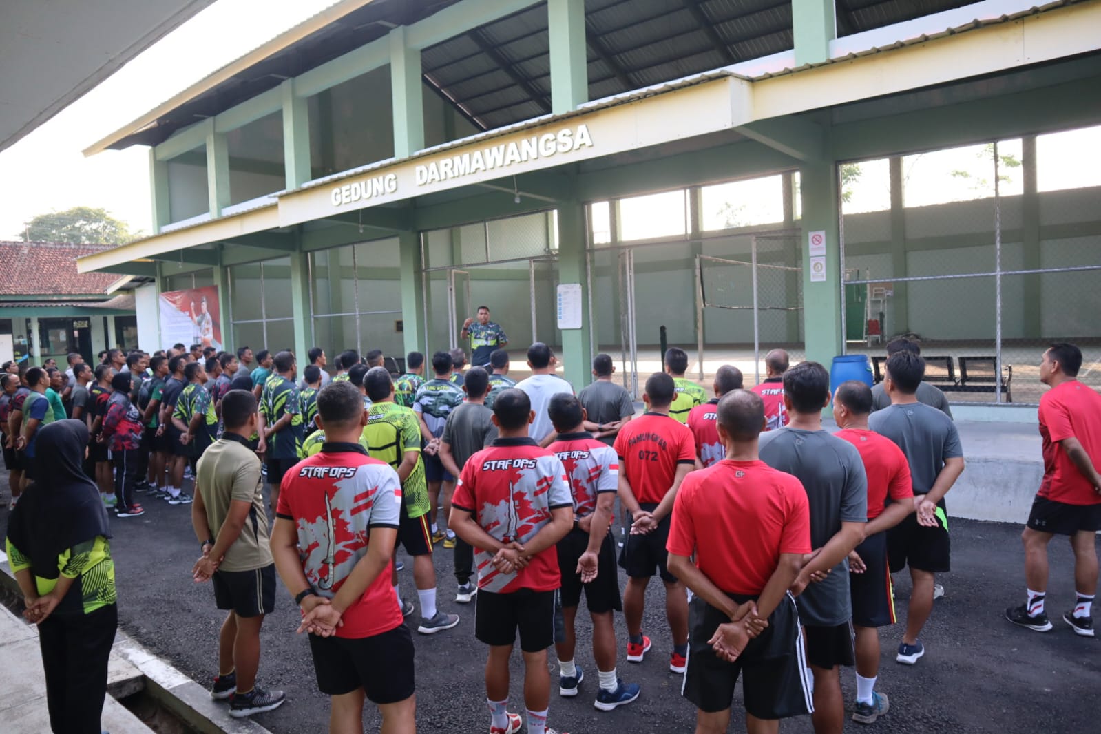 Bantul – Dalam rangka menjaga kesehatan dan kebugaran tubuh, puluhan anggota Kodim 0729 Bantul yang di pimpin Pasi Ter Kodim 0729 Bantul, Kapten Inf M.B. Berhen Suncoko memimpin apel pagi di lanjutkan olahraga bersama, apel di gelar di halaman Gor Dharmawangsa Makodim 0729 Bantul, Selasa (22/08/2023).