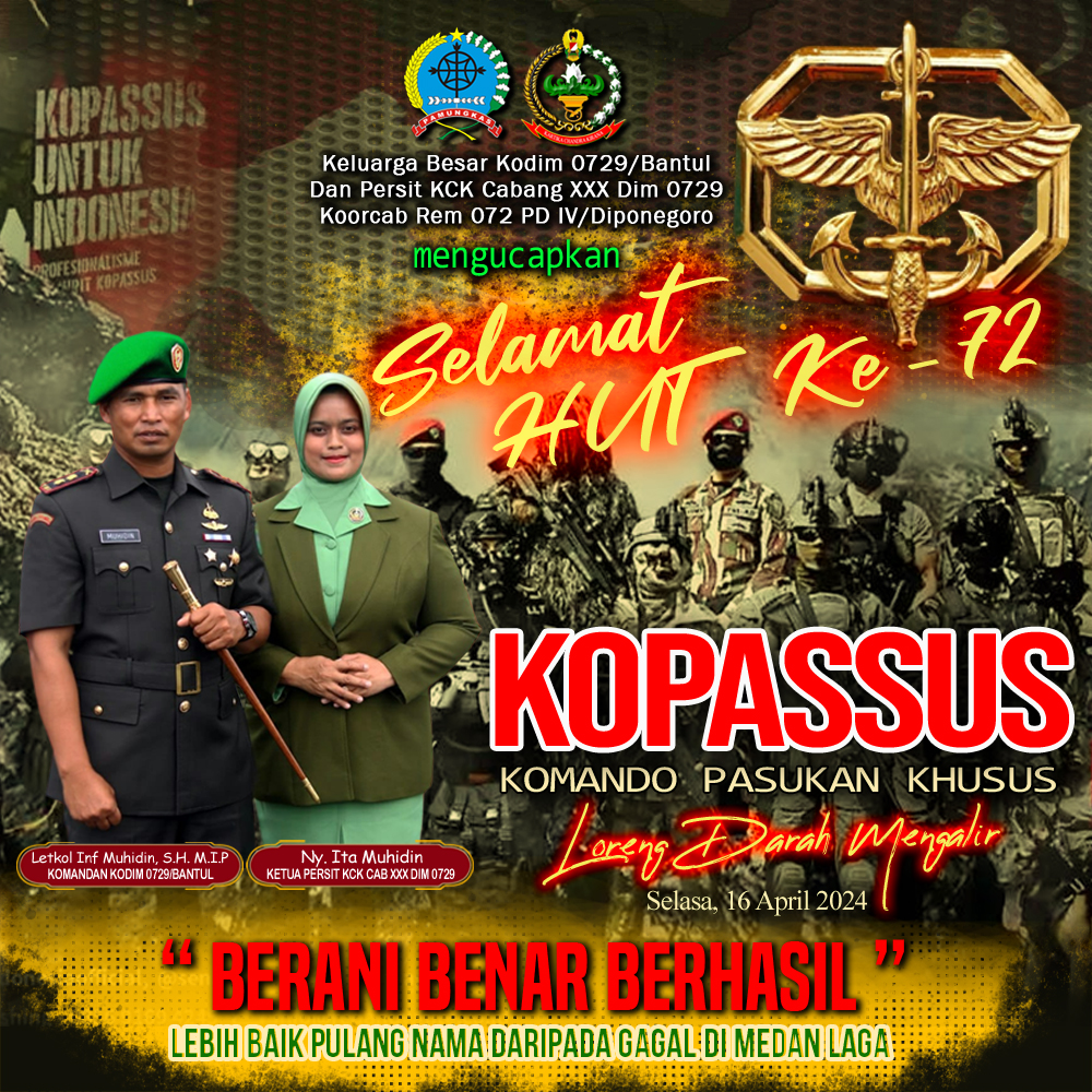 Beranda / Dirgahayu Ke – 72 KOPASSUS “Berani Benar Berhasil”Dirgahayu Ke – 72 KOPASSUS “Berani Benar Berhasil”April 14, 2024 Share this ArticlePrevious ArticleDandim 0729 Bantul Pengecekan Pos Pengamanan Operasi Ketupat Progo Idul Fitri 1445 H TA 2024Next ArticleAnggota Koramil 17/Srandakan Melaksanakan Pos Pengamanan Lebaranadmin