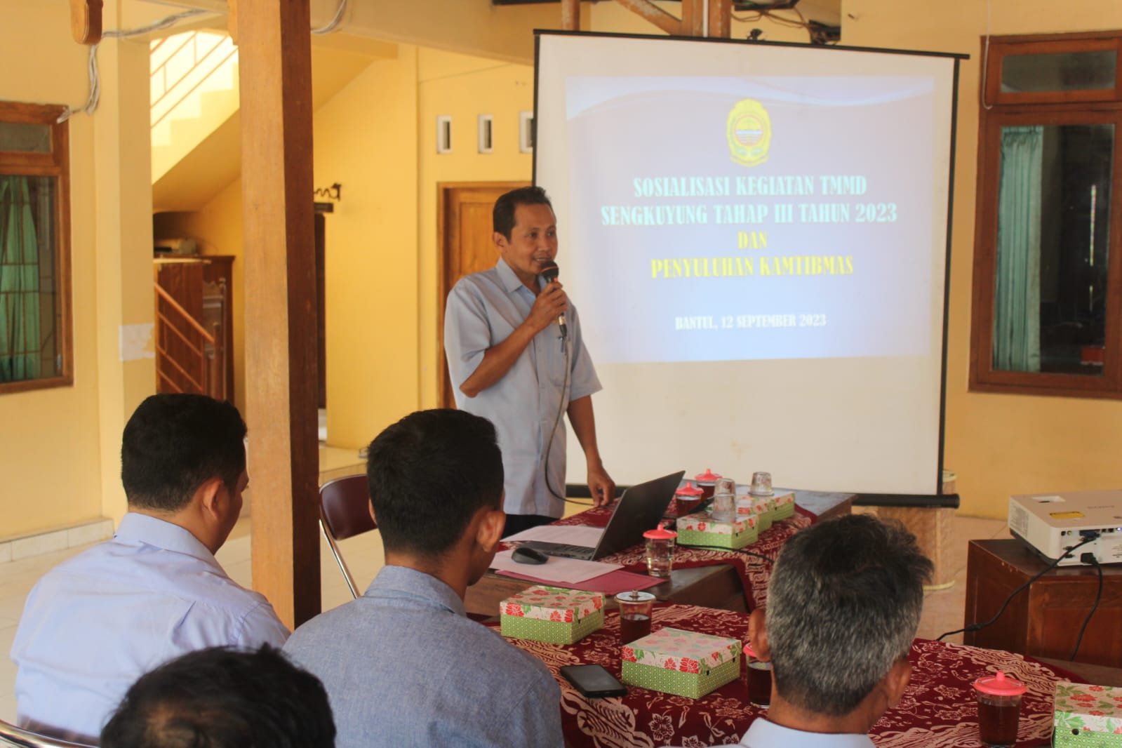 Bantul-Bersama Dinas Pemerintah dan Kalurahan (PMK) Bantul bersama Kodim menggelar sosialisasi kepada warga masyarakat Gunung Cilik dan Tangkil yang nantinya kedua Padukuhan tersebut menjadi sasaran kegiatan TMMD Sengkuyung Tahap III Kodim 0729/Bantul Tahun 2023. Selasa (12/09).
