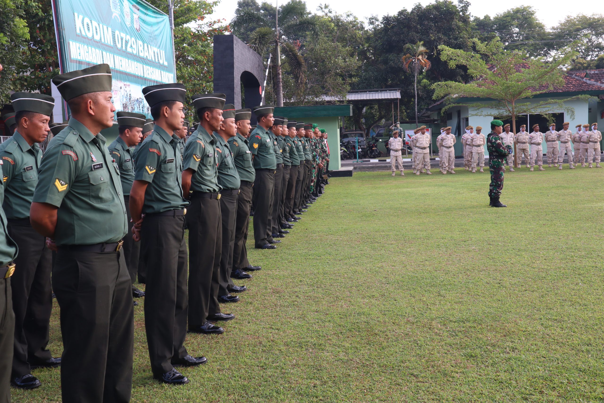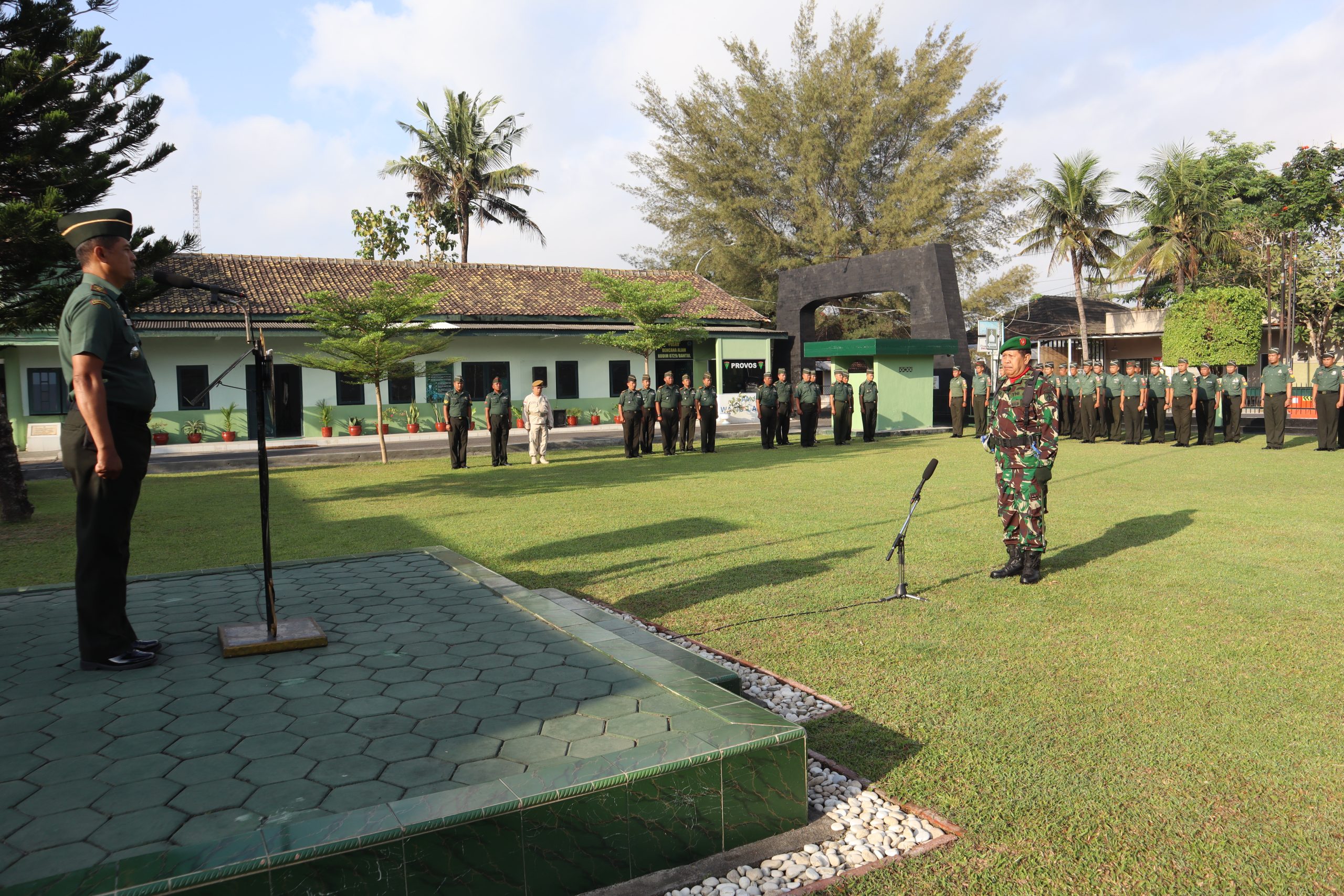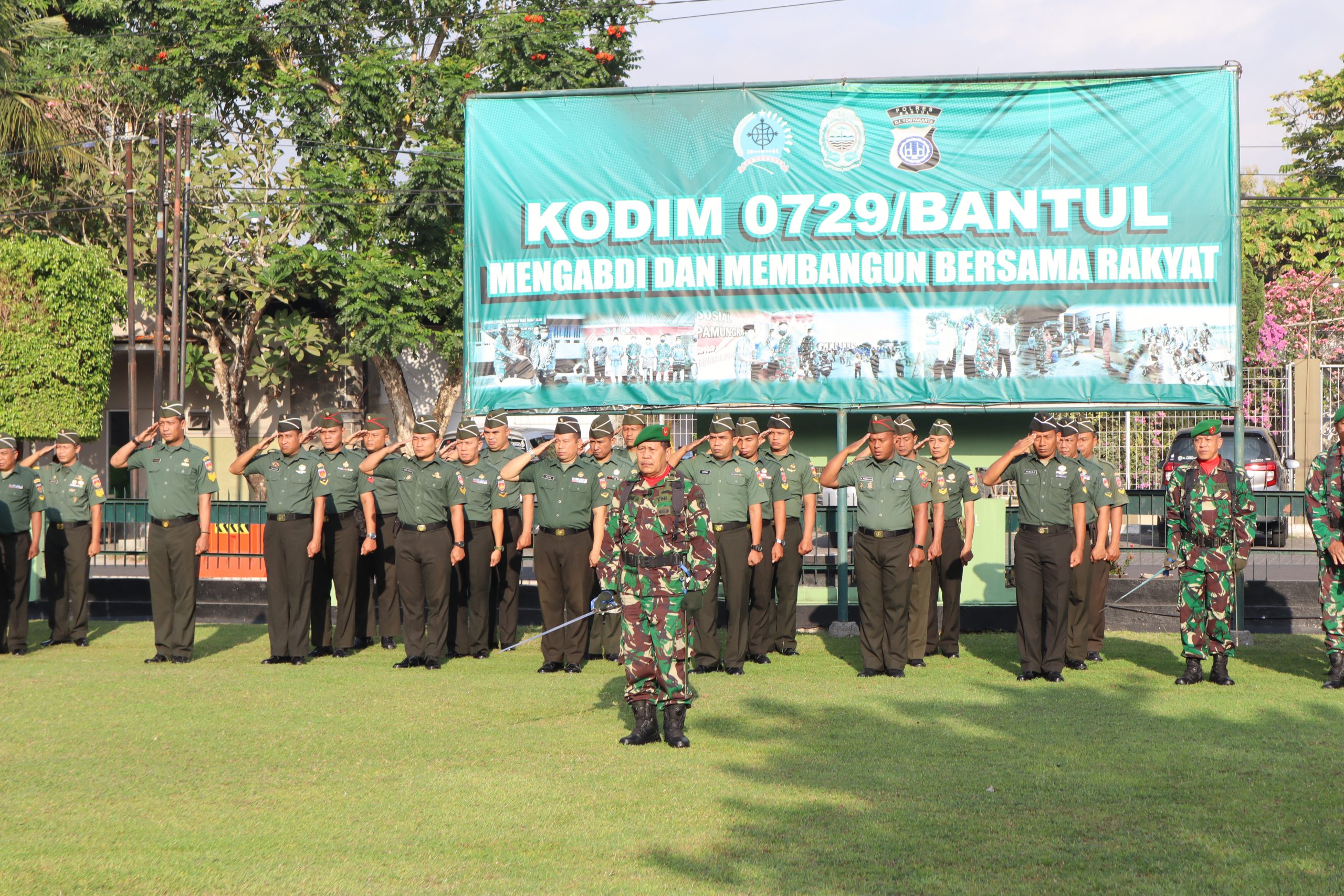 Bantul – Anggota Kodim 0729 Bantul beserta Koramil jajaran melaksanakan upacara bendera setiap Senin di lapangan upacara Makodim 0729 Bantul di Jl. A Yani No 1 Melikan Kidul Bantul, Badegan, Bantul Yogyakarta. (Senin 18/09).