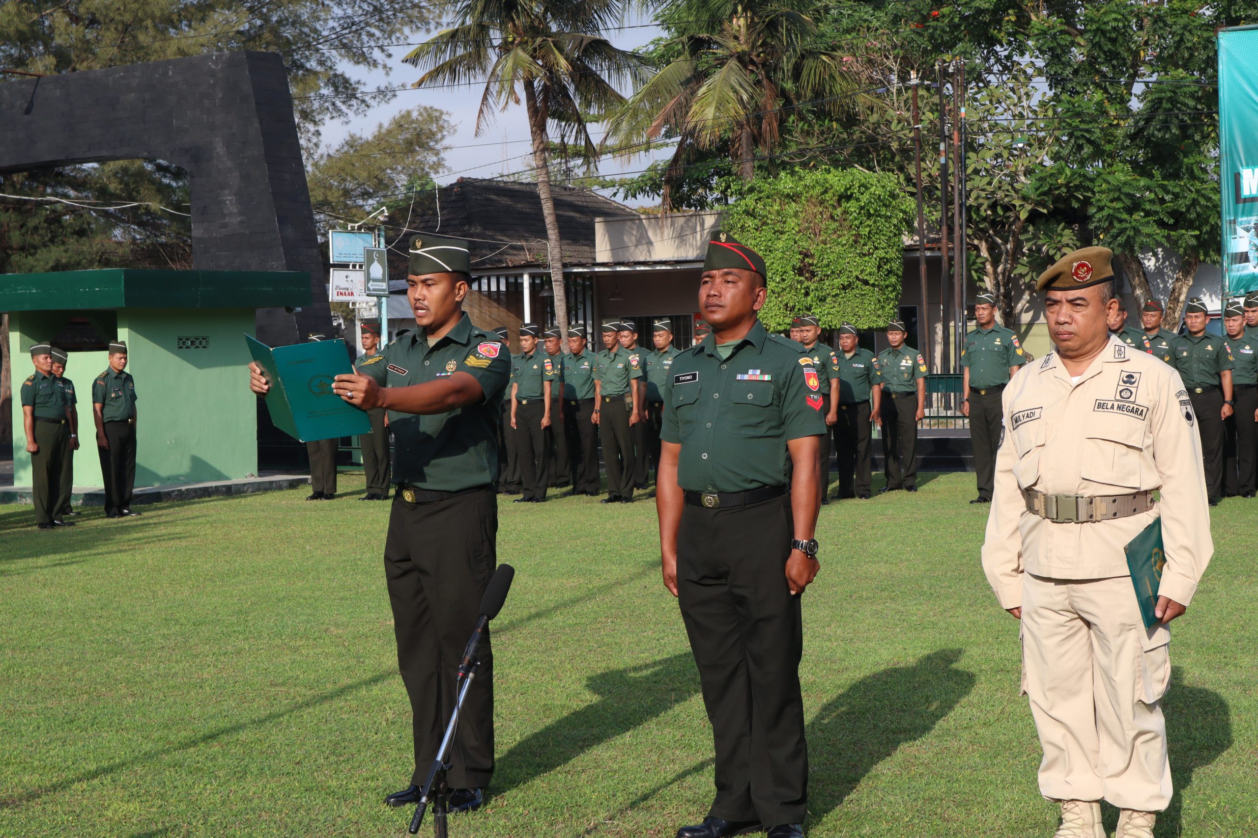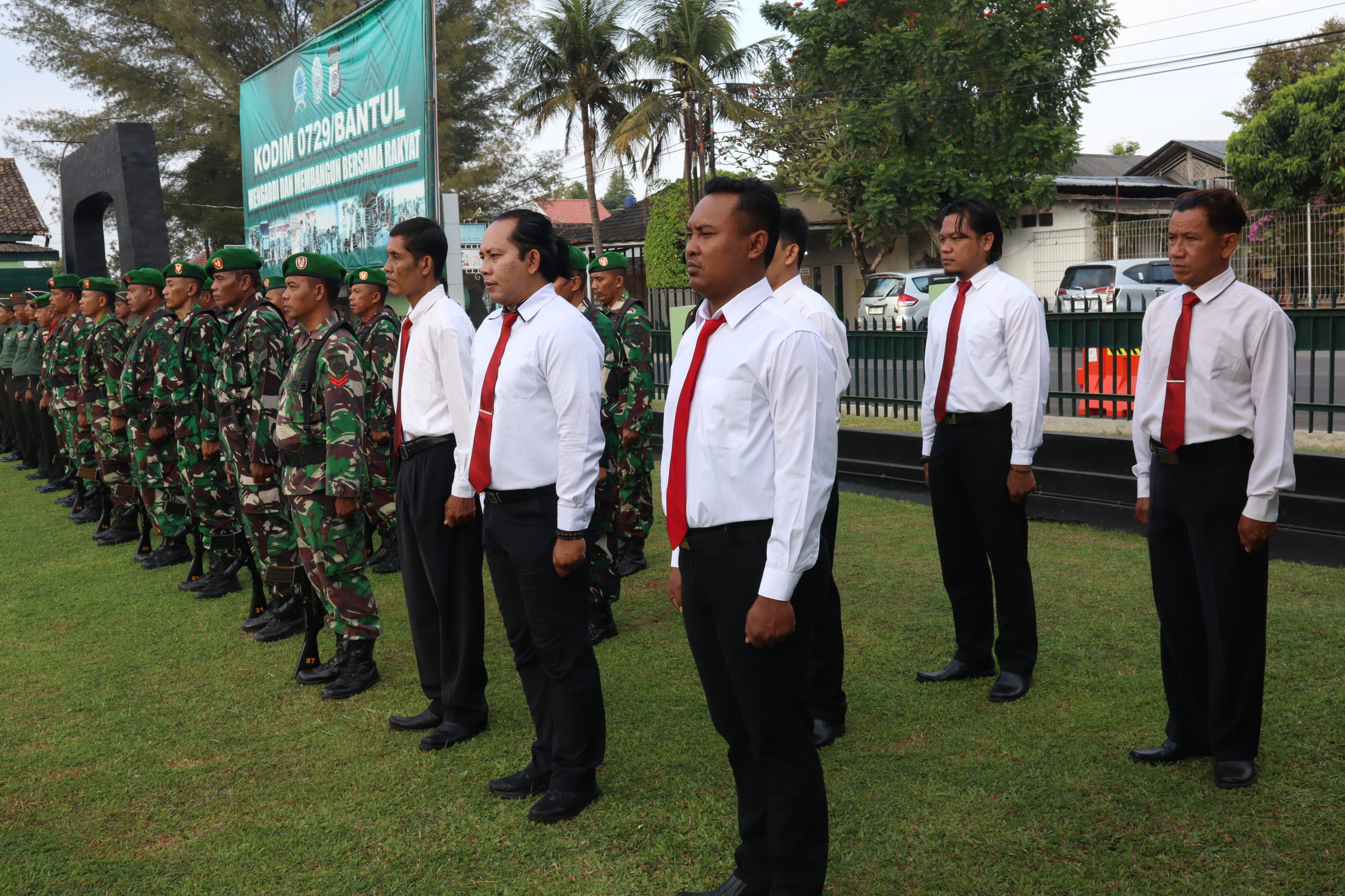 Bertindak sebagai Inspektur Upacara Danramil 03 Kasihan, Mayor Inf Sukapta, sedangkan Danramil 07 Pleret, Lettu Kav Abjan Sadik bertindak sebagai Komandan Upacara dan Pasi Pers Kodim 0729 Bantul, Kapten Cba Supriyono sebagai perwira upacara.