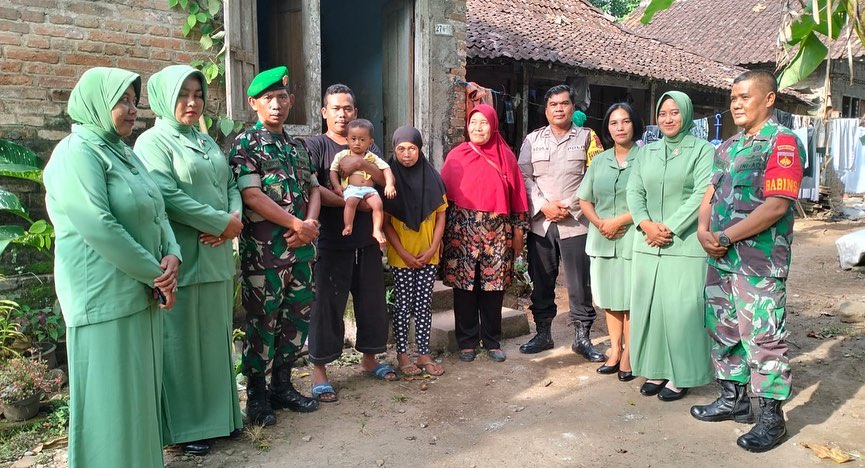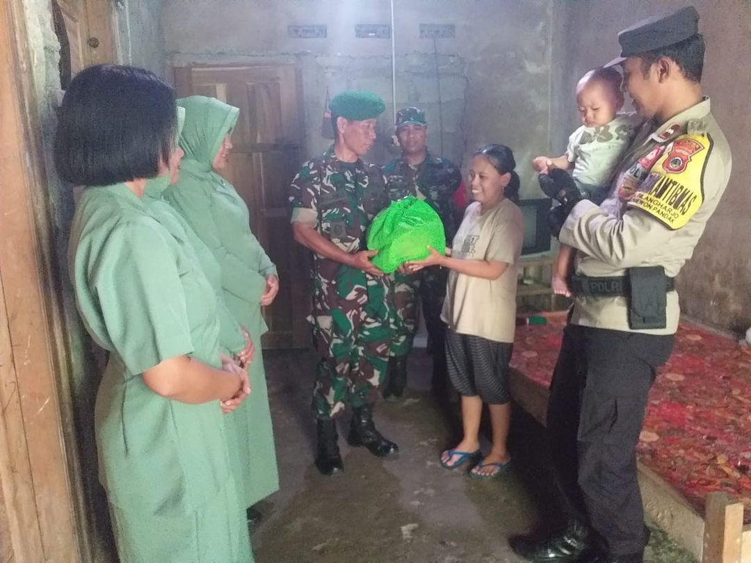 Pandak_Danramil 16/Pandak Kodim 0729/Bantul, Kapten Inf Rajiko di dampingi ibu, Babinsa, Bhabinkamtibmas dan Persit memberikan bantuan berupa bahan makanan dan susu kepada orang tua yang memiliki anak...