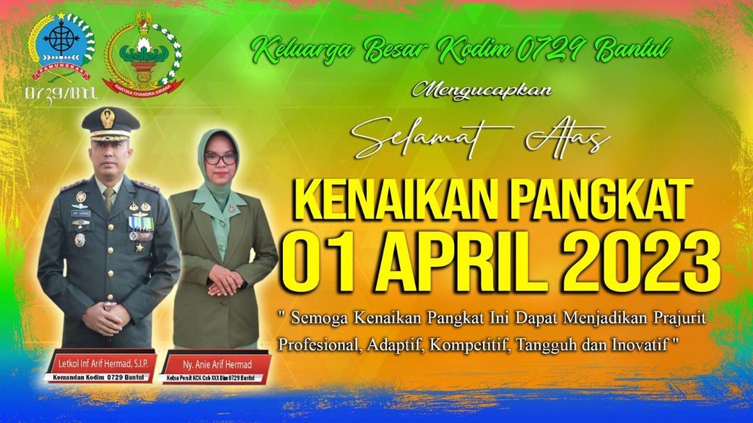 Bantul – Selesai upacara bendera hari senin dilanjutkan upacara kenaikan pangkat 1-04-2023 suatu penghargaan dinaikkan pangkatnya satu tingkat. Lebih tinggi di Lapangan Upacara Makodim 0729 Bantul Jl....