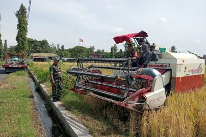 Bantul – Babinsa Gilangharjo Koramil Pandak, Sertu Joni Siswanto dan Serda Mulyono, melaksanakan pendampingan panen padi milik Bapak Siswantya di Bulak Kadisoro, Pedukuhan Kadisoro, Kalurahan Gi...