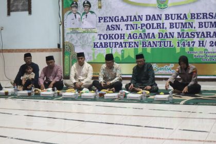 Bantul – Komandan Kodim 0729/Bantul, Letkol Kav Fikri Nurheldi, S.E., M.Han., menghadiri kegiatan Pengajian dan Buka Puasa Bersama ASN, TNI–POLRI, BUMN, BUMD, Tokoh Agama dan Tokoh Masyarakat Kabupate...